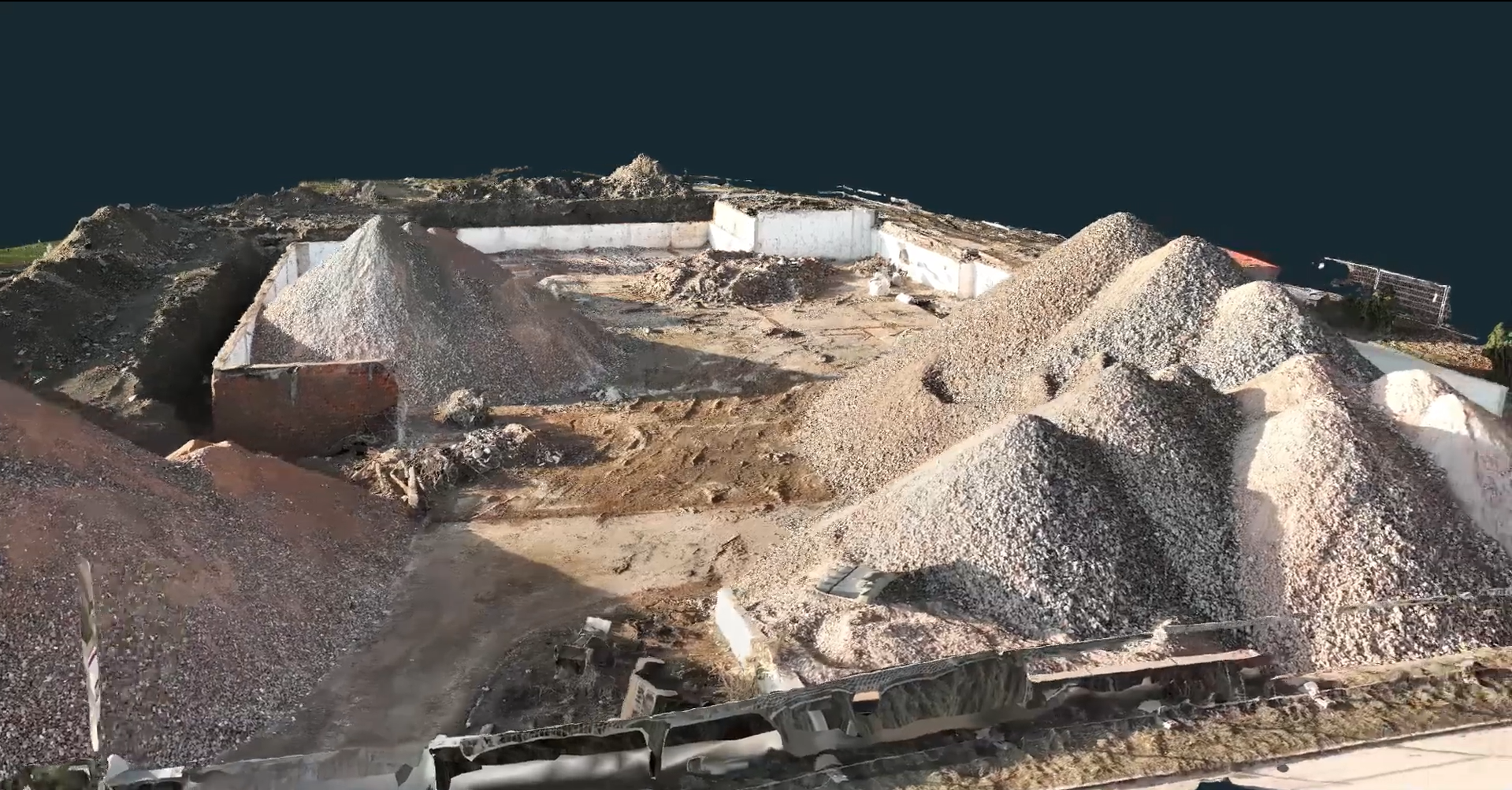 Cílem projektu bylo vypočítat objemy zbývající sypké sutě a stávajícího železobetonového zdiva, které bylo rozmístěno na různých rovinách na území.